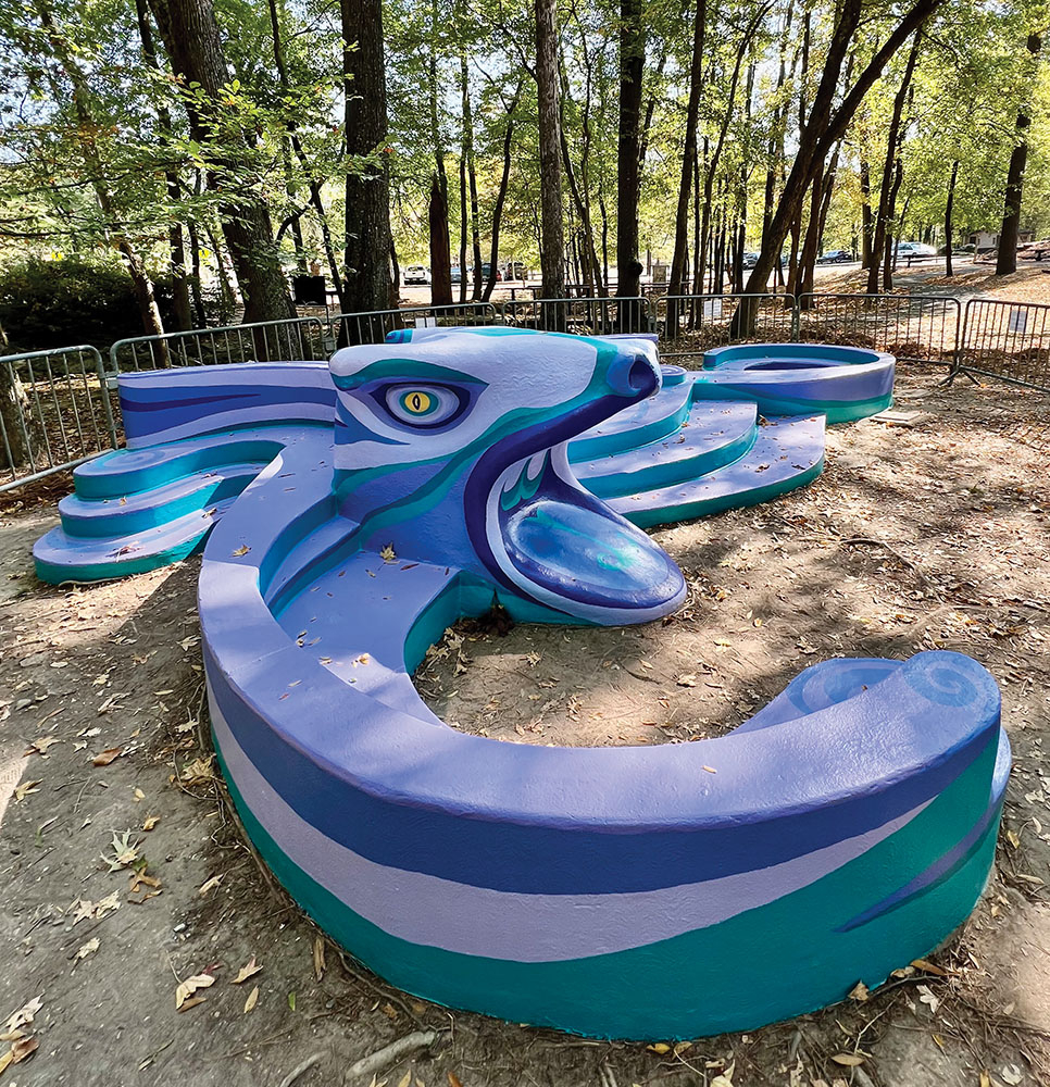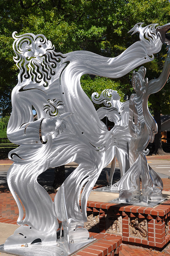 Miller’s community and school collaborations have resulted in festive fountains, mobiles, murals, playground sculptures, costumes, theater sets and parades in communities across Arkansas including Cabot, Fayetteville, Little Rock, Monticello, Pottsville, Searcy, Waldron and Wrightsville.