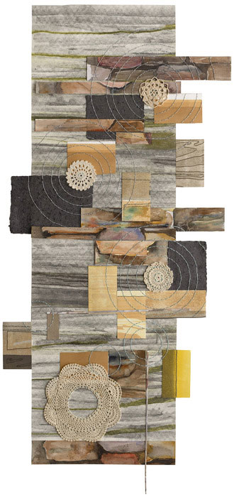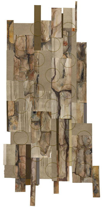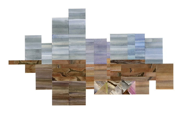 The work I have engaged in for the last 15 years explores landscape narratives created through direct observation and memory, photography, drawings and prints. Most recently, the work has focused on landscapes as a complex collection of living beings and on the horizon as an idea of prospect and hope. These resulting paintings are an illustrated conversation between the landscape and me. Working on paper with water media is a sensual act, connecting me deeply with the subject. But the paper also allows me to cut and edit, or to stitch together pieces that had once been connected. This way of working is an analogy of the landscape itself: trees, mountains, sky, and flora are individual elements that co-exist in a particular place. In the way these individual elements create the larger landscape, the pieces of paper I compose also create a larger image. Each piece essential; each element dependent on the other. In this way, I have come to observe the landscape as a quilt.