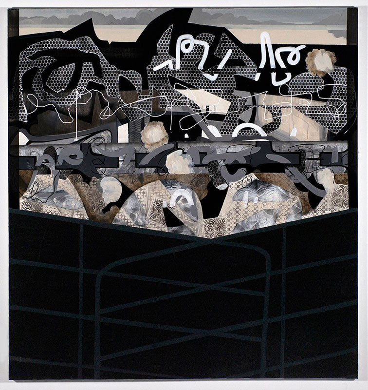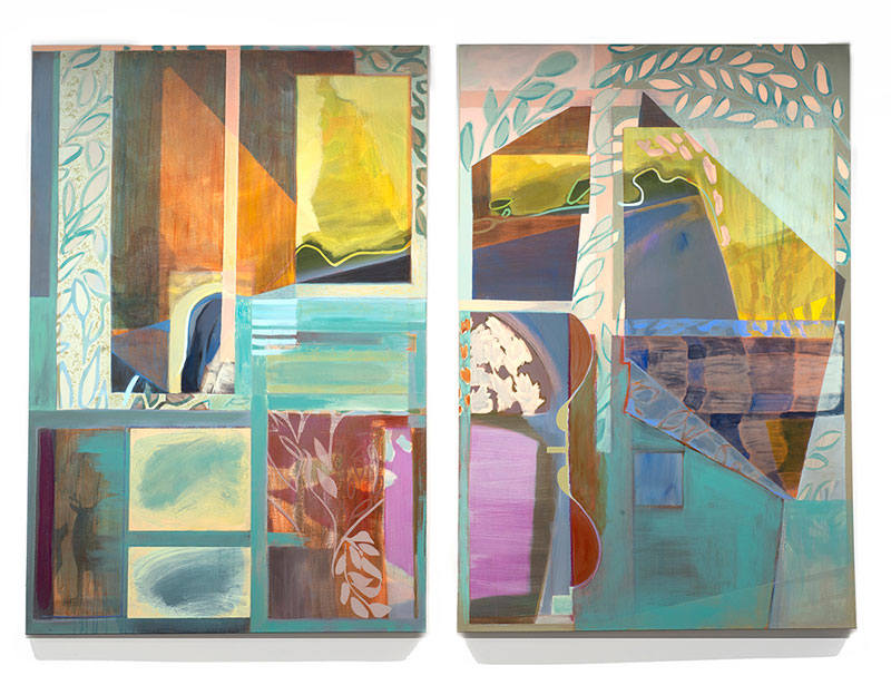 In the studio, I often ask, "Where does the continual desire, the compulsion to create art originate?" The process is not always easy, yet, as an artist, I process experience and translate encounters into visual language. I am curious about the strange potential visual language; in my case, a concoction of abstract and figurative forms has to communicate the quality of experience. Painting also provides me with opportunities to consider where vulnerability, sensitivity and generosity intersect creative actions. My studio work revolves around repetitious actions and variations on adjustment, removal, embellishment and demolition that lead to discoveries while painting. In successive layers, I impose solid shapes on a composition to weigh down, pin, or highlight, particularly striking passages which allow me to shift the image and continually move the process forward until the final image emerges.
