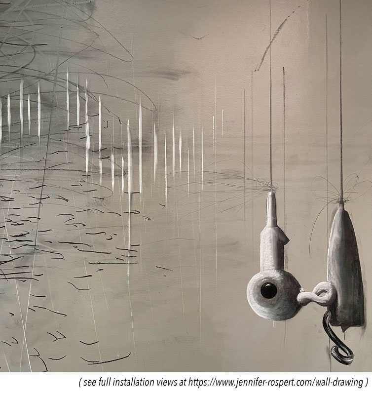 Architecturally responsive (site-specific) graphite drawings operate in tandem with continual and progressive bodies of work regarding fluctuating sensation(s) of gravity, measurement of temporal spaces, levels of lucid consciousness and other sensational considerations. Graphite (in all its delicate forms) is the preferred and precise media for investigations of any chosen drawing surface; an act I sometimes refer to as “drawing excavations.” With these ideas in mind, I work primarily within the limitations of a gallery space, or on bespoke designed (2D) surfaces made of aged papers and/or a wide range of discarded construction materials.