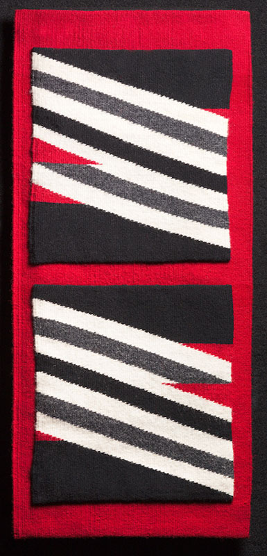 As the reality of climate change becomes evident with the pandemic, huge amounts of rainfall, more tornadoes and a variety of disruptions to daily life, I find shelter in my studio. It is there that I can consider my need to calm the chaos or to reflect what is happening around me. Working with yarns, my loom and designs of my own imagining, I weave tapestries. Some are small abstractions, while others are slightly larger and use the simplified image of a house, as the center amidst catastrophes. For the span of time when I am weaving, life slows, my focus is narrowed and my anxiety is momentarily placed on the back burner.