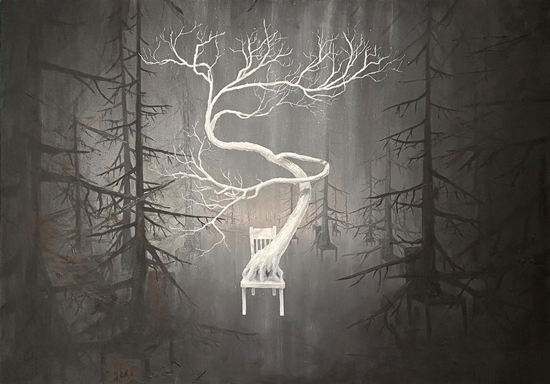 As an artist, my work explores the intricate tapestry of the human mind and its connection to memories and experiences. The visual representation of this concept takes the form of chair-rooted trees, which I call Chrees (Chair + Tree = Chree). Chrees are a visual metaphor of the symbiotic relationship between our grounded existence and the boundless growth and transformation of our thoughts. Trees, known for their ability to grow, branch out and adapt to their environment, capture the essence of the human thought process. And chairs, as everyday objects, represent the constructed nature of our recollections, embodying the framework upon which our memories are built. Each Chree seeks to visually bridge the gap between the organic and the constructed, forming a unique portrait of human existence. My artwork invites viewers on a journey of introspection and contemplation. Within the realm of Chree, the human mind's growth intertwines with the organic world, allowing for a deeper understanding of the connections between our thoughts, memories, and the tapestry of existence. It is my hope that through this exploration, my art will evoke a sense of wonder, ignite introspection and illuminate the profound marvels that lie within the captivating realm of Chree.