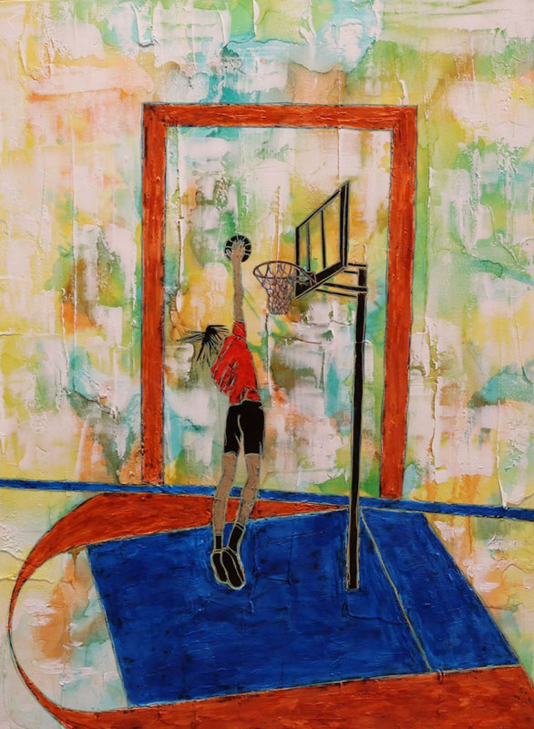 My work emphasizes components that contribute to and blend African American culture in the United States. The narrative explores personal staples from my background such as hair and streetball as well as worldly explorations such as pop culture and hip hop.