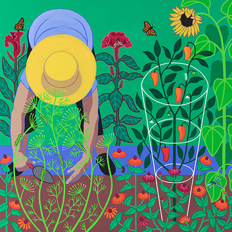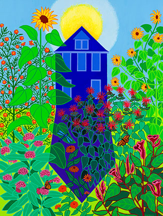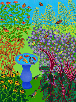 To garden is to hope. I combat climate change by planting natives that attract birds and pollinators, animating the garden and pictorial space. My work is an invitation to the viewer to explore the ever-changing space of the garden and reconnect with nature.