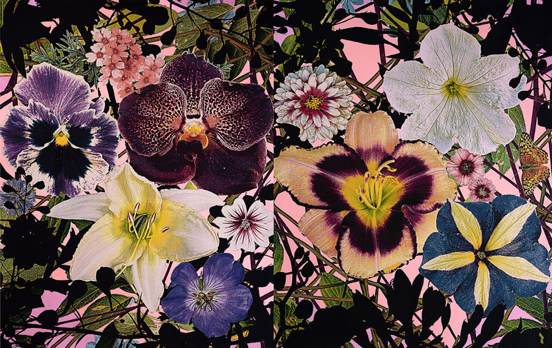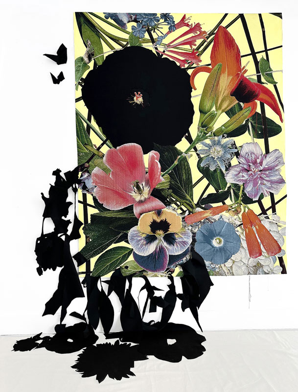 Combining floral photography, woven tapestry, thread, paint, and traditional handwork techniques, I make large-scale textile garden installations where flowers symbolize both the natural world and our humanity.