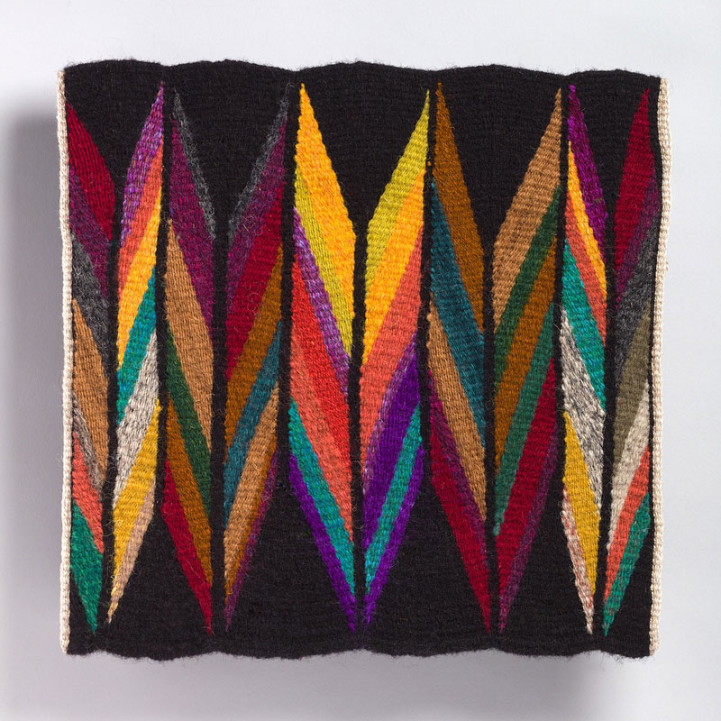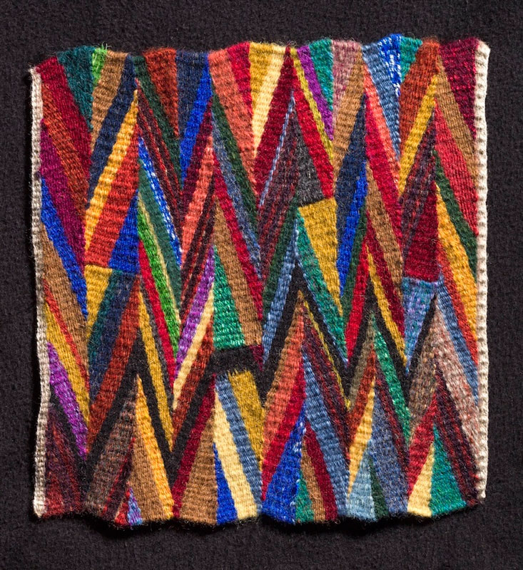 The diagonal as a design element has appeared in my tapestries over the years. So it was with much excitement that I took a workshop and learned a technique called "wedge weave "which originated with the Navajo around 1870. The weaving process of laying in the weft on a diagonal causes the selvedges to move in and out creating a slight zigzag on two of the edges. Aside from disturbing the rectilinear framing of the work, this approach offers a new roadmap for my energetic use of color. Most often it is my love of color and design that motivate my work, so using wedge weave opens new vistas for me. While the world falls apart around me, the visual excitement in the process of weaving becomes my antidote to chaos.
