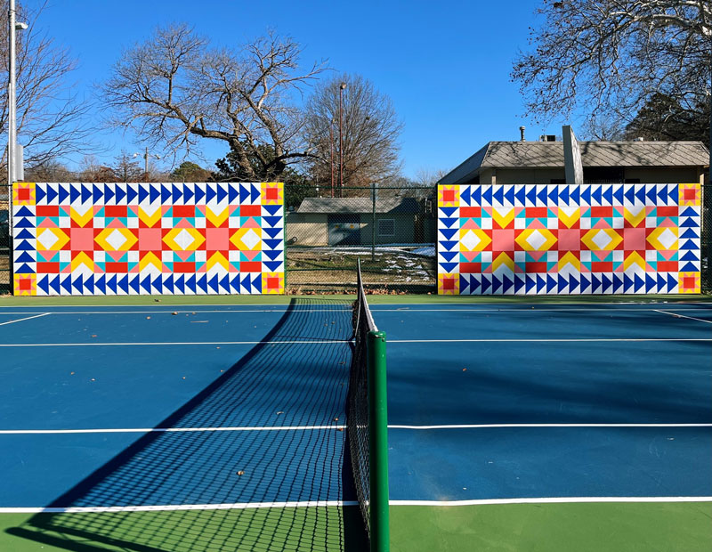 I'm a second generation sign painter and muralist based in the Arkansas Ozarks. I am passionate about improving the urban landscape via bright murals and bold signage. I honor the timeless art of quilt making by hand painting quilts of my own, both as small works and as large murals.