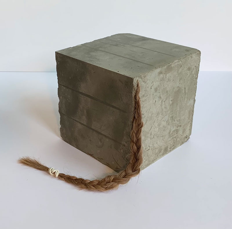 Human Hair Rat Tail in Concrete Cube