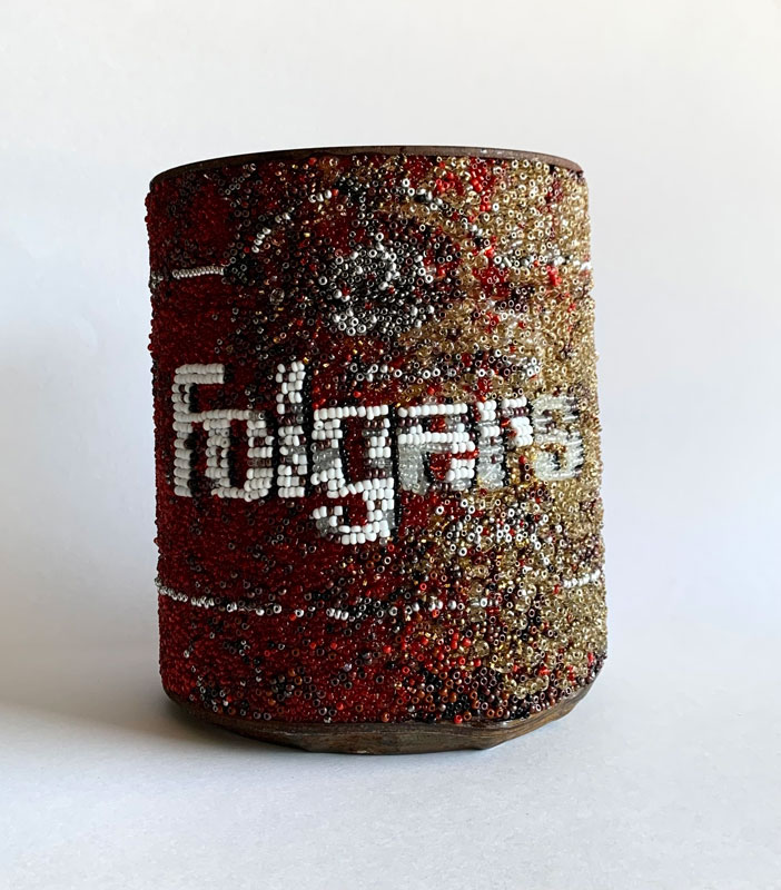 Glass Beads on Rusted Folgers Coffee Can