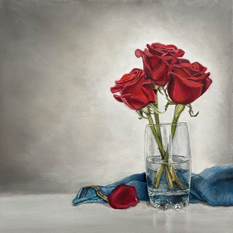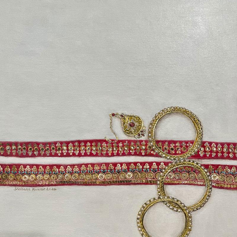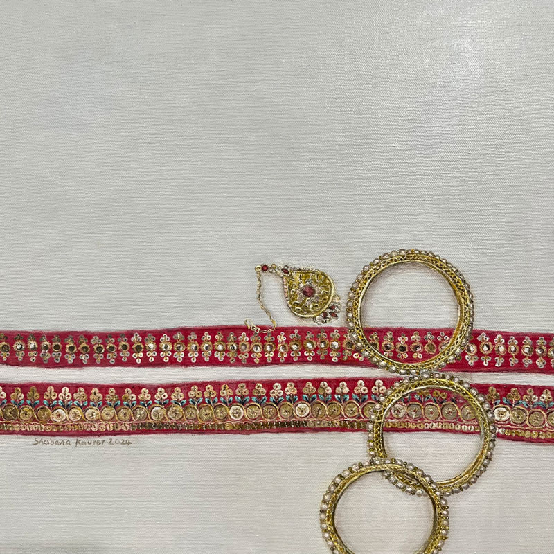 As a contemporary painter, I create portraits, still life, and floral paintings, that deeply explore South Asian representation through a blend of traditional and nontraditional compositions.My work begins with the use of my own fabrics, jewelry, and fresh florals, allowing me to stage compositions rich in cultural significance and memories.