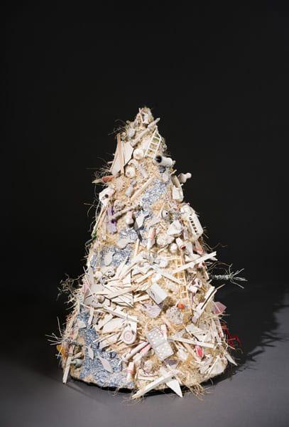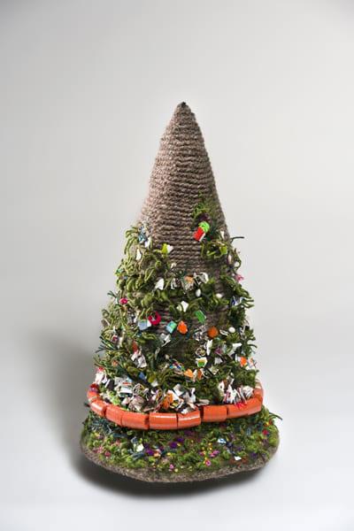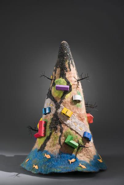 Wet-felting; wool acrylic, wire, polymer clay, found objects, liquid rubber