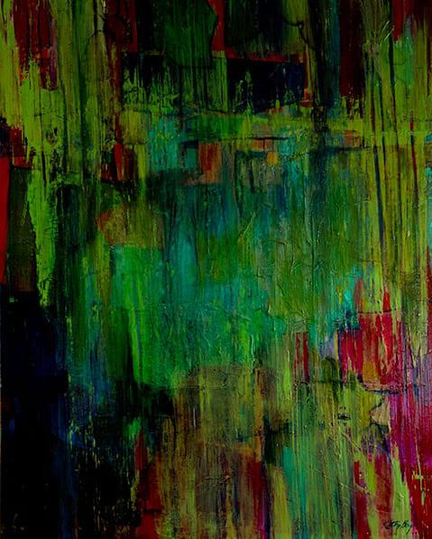 I create visually stunning, imaginative works on paper, canvas, and metal through bold use of color, strong design, and an enthusiastic approach to painting. Richly layered colorful passages are the interwoven components that energize my paintings. I seek to capture a unique representation of landscape through abstraction in my exploration of color, line, texture, and collage. The thrill of exploration of color relationships satisfy my passionate endeavors of painting and offer finished works that exude energy.