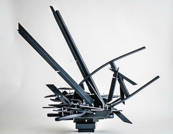 My sculptures are about being in the moment, celebrating life and relationships with ourselves and others. When I bend wood, I am fully alive and present. If I bend too much it breaks; if not enough, I do not take full advantage of what the wood offers me. In every way possible, I bend, nail, paint, saw, drill, soak in water, and screw in a very spontaneous and deliberate way.