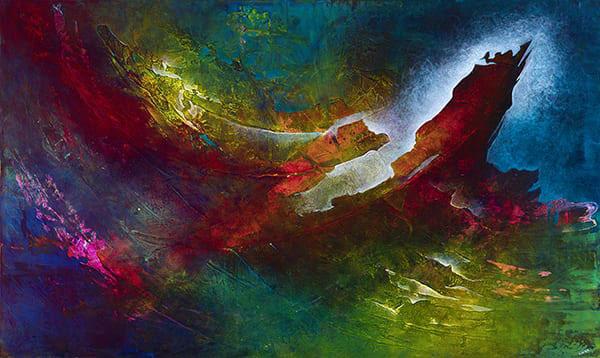 In my painting, the process of transformation occurs from the moment life’s touch moves me and sparks inspiration. From grief comes ecstasy; sorrow becomes joy; a black canvas becomes split and filled with light and vibrant color.
