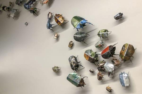 paper, ink, epoxy resin, aluminum foil, sewing pins