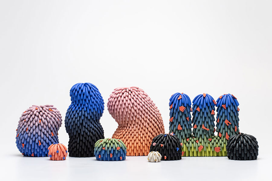 Soft Watermelon Dust Furry with Blue Rocks
