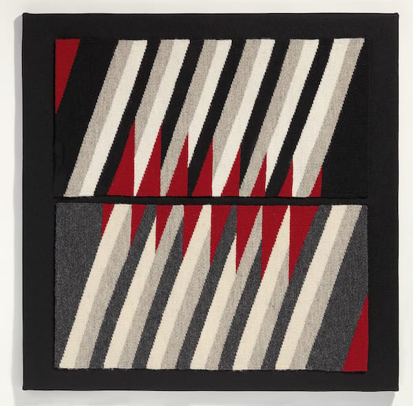 wool tapestry on linen warp sewn to wool felt