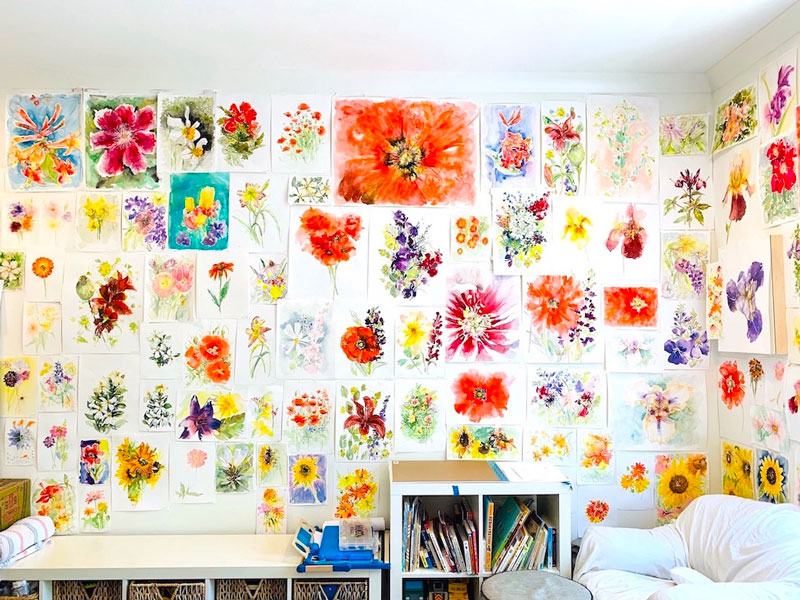 I make paintings to notice the world around me, understand myself better and connect with others. I am drawn to the flow and transparency of watery paint on absorbent surfaces. The process of observing and translating faces, figures, and flowers into paintings is therapeutic, meditative, and brings me joy. I enjoy the challenge of how to control it as much as the medium and surface will allow, while also embracing the unpredictability of it. This is an appropriate metaphor to my life right now—raising small children while trying to maintain a career and grow as an artist. My work functions to literalize the balance between control and release through its materiality and its subject matter.