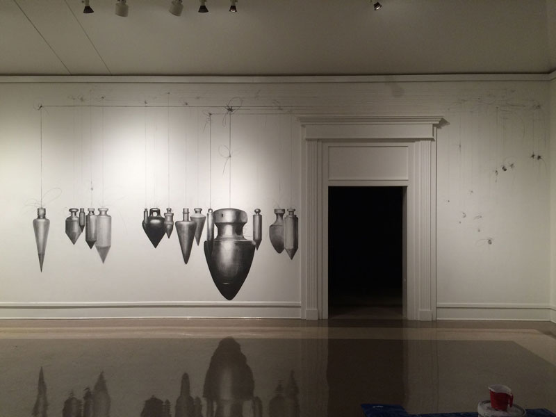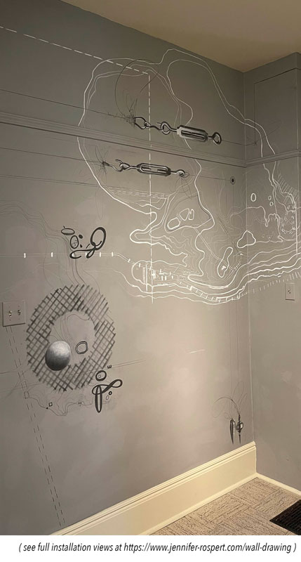 Architecturally responsive (site-specific) graphite drawings operate in tandem with continual and progressive bodies of work regarding fluctuating sensation(s) of gravity, measurement of temporal spaces, levels of lucid consciousness and other sensational considerations. Graphite (in all its delicate forms) is the preferred and precise media for investigations of any chosen drawing surface; an act I sometimes refer to as “drawing excavations.” With these ideas in mind, I work primarily within the limitations of a gallery space, or on bespoke designed (2D) surfaces made of aged papers and/or a wide range of discarded construction materials.