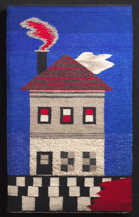 As the reality of climate change becomes evident with the pandemic, huge amounts of rainfall, more tornadoes and a variety of disruptions to daily life, I find shelter in my studio. It is there that I can consider my need to calm the chaos or to reflect what is happening around me. Working with yarns, my loom and designs of my own imagining, I weave tapestries. Some are small abstractions, while others are slightly larger and use the simplified image of a house, as the center amidst catastrophes. For the span of time when I am weaving, life slows, my focus is narrowed and my anxiety is momentarily placed on the back burner.
