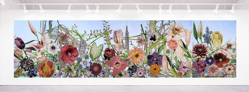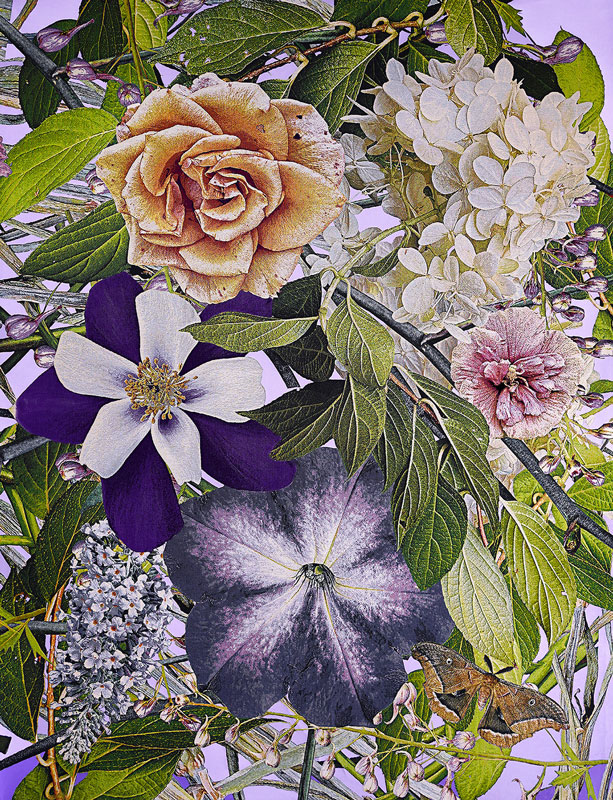 Combining floral photography, woven tapestry, thread, paint, and traditional handwork techniques, I make large-scale textile garden installations where flowers symbolize both the natural world and our humanity.