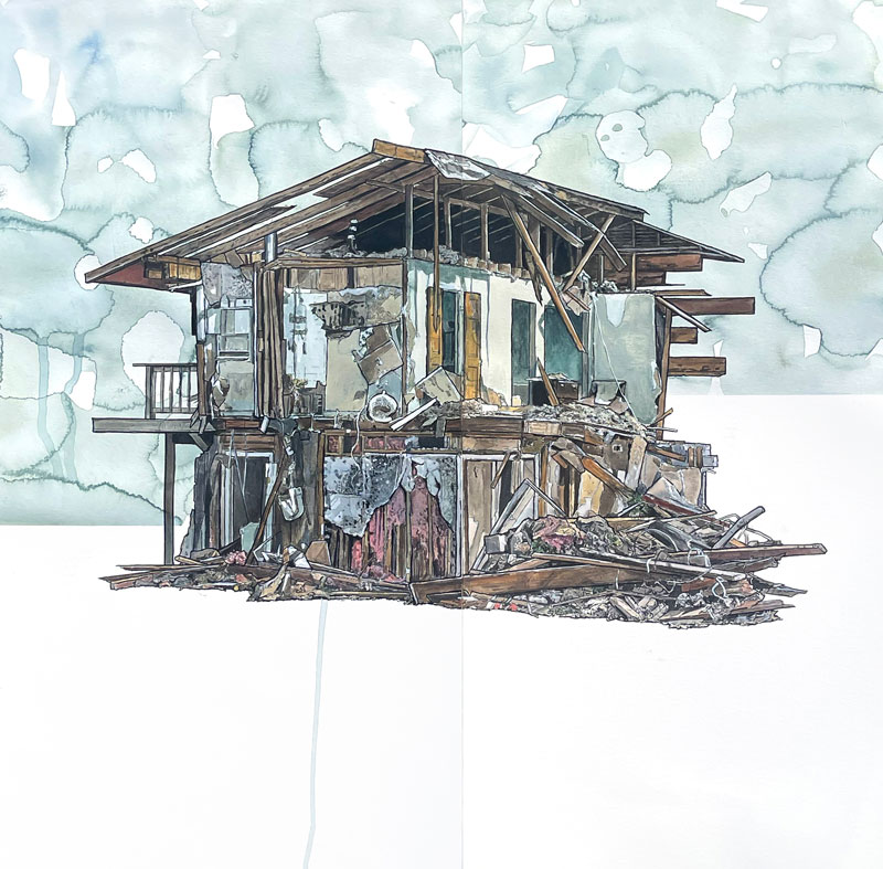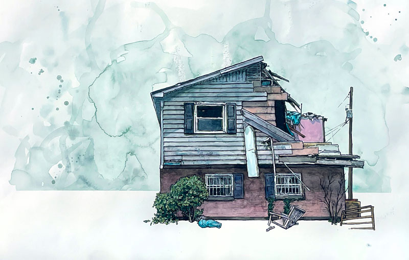 I am an interdisciplinary visual artist whose work investigates events and personal stories in the form of painting and drawing. My practice is driven by curiosity and grows from a strong desire to document fragments of our human experience that often go unseen. I strive to highlight stories of resilience and transition from communities and individuals whose perspectives are underrepresented. I'm especially drawn to the worn, damaged, and mundane elements that speak quietly but powerfully about time, memory, and survival. Most recently, my work has focused on the aftermath of tornado damage in my Little Rock neighborhood, using observational drawing to reflect on the physical and emotional impact of environmental disruption.