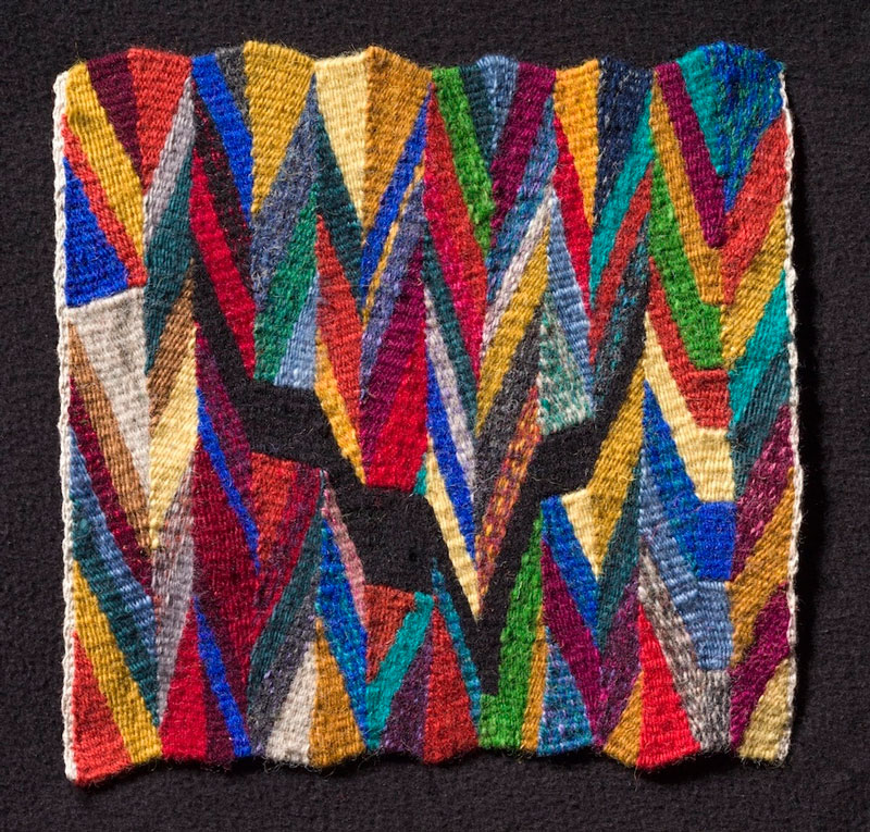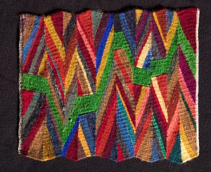 The diagonal as a design element has appeared in my tapestries over the years. So it was with much excitement that I took a workshop and learned a technique called "wedge weave "which originated with the Navajo around 1870. The weaving process of laying in the weft on a diagonal causes the selvedges to move in and out creating a slight zigzag on two of the edges. Aside from disturbing the rectilinear framing of the work, this approach offers a new roadmap for my energetic use of color. Most often it is my love of color and design that motivate my work, so using wedge weave opens new vistas for me. While the world falls apart around me, the visual excitement in the process of weaving becomes my antidote to chaos.