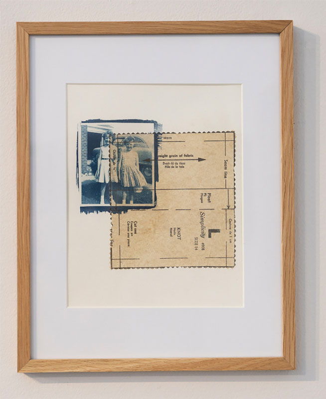 This body of work represents fragments of personal and collective histories. I use both found and family photographs as a way to dive into themes of memory, narrative, and the archive. I am interested in the way we collect and define our lives through images. The photographs hold the evidence of our existence. They carry the weight of nostalgia, identity, and loss, but simultaneously serve as the proof that we were here. The pattern pieces are the blueprint, quite literally, for what we choose to connect to and carry with us. We follow instructions, we make our own rules. We cut a little here and gain a little there. By enlarging, overlaying, and mixing patterns with new and old photographs, the individual memories they hold blend, blur, and become new stories in their arrangements.